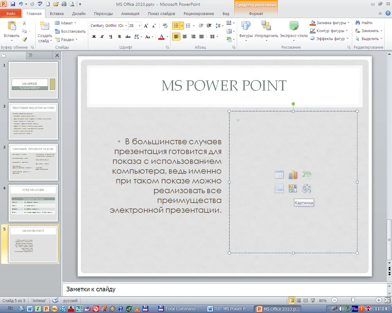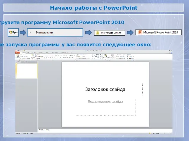Powerpoint 2010 — программа, предназначенная для создания и просмотра мультимедийных презентаций.
